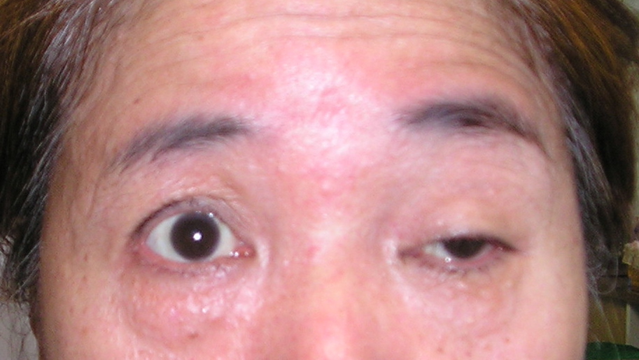 左眼は 上まぶたが 下がり