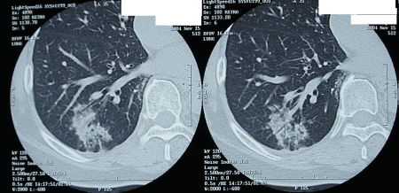 右 S10 の肺胞上皮癌。